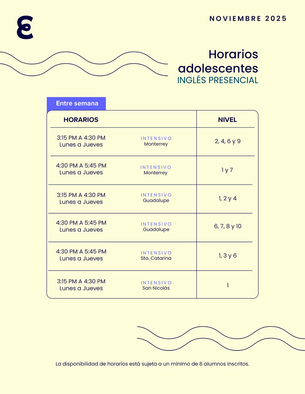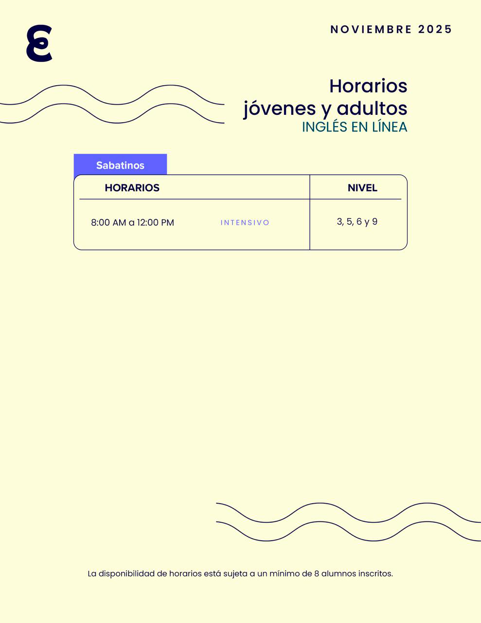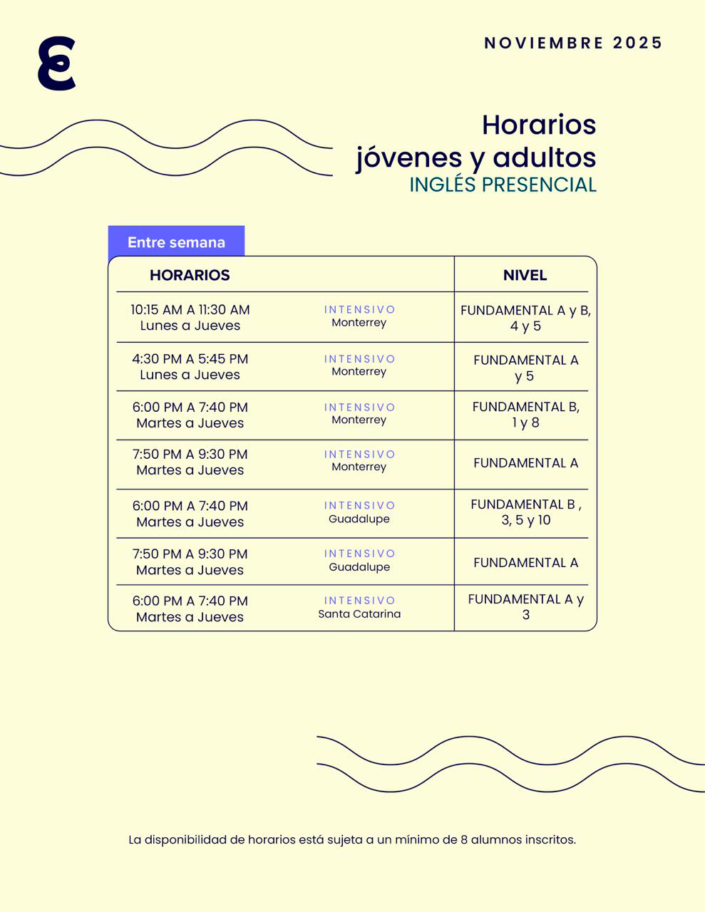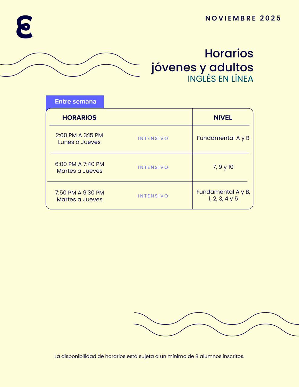 Existe un plan de estudios diseñado adecuadamente para la enseñanza de inglés de jóvenes y adultos, otro para adolescentes y uno diferente para niños. Existen varias modalidades: Cursos Regulares, Cursos Intensivos y Cursos Intensivos Sabatinos. LEER MÁS
